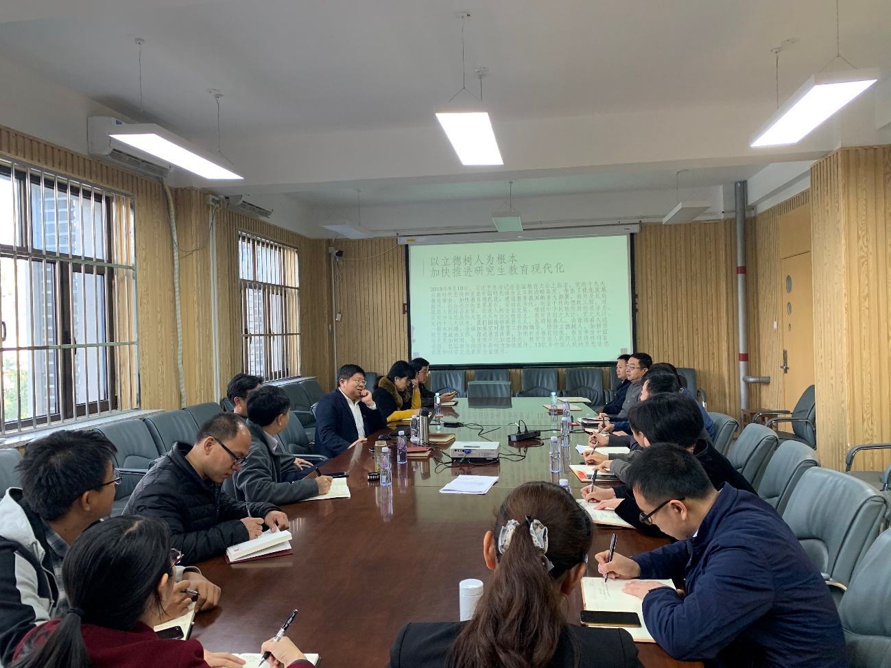 為了把握好主題教育的著力點,緊緊圍繞為黨育人、為國育才,突出黨的政治建設,緊扣立德樹人根本任務,聚焦貫徹落實習近平新時代中國特色社會主義思想和習近平總書記關于教育工作的重要講話和重要精神,認真貫徹落實“不忘初心、牢記使命”主題教育。2019年11月1日上午,研究生院副院長臧峰宇教授結合學習和調研基礎,向全體黨員干部講授以“以立德樹人為根本加快推進研究生教育現代化”為題的專題黨課。研究生院常務副院長劉鳳良教授、研究生院副院長劉后濱教授出席,研究生院全體黨員干部參加。