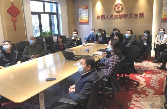 2021年11月8日-11日,中國共產黨第十九屆中央委員會第六次全體會議在北京召開。11月12日上午,研究生院黨支部組織在院黨員干部在312會議室集中觀看十九屆六中全會精神新聞發布會直播,學習黨的十九屆六中全會精神,部分因公不在院的同志也通過多種形式共同觀看學習。研究生院常務副院長陳彥斌、副院長李霞及研究生院黨員干部群眾27人參加學習。