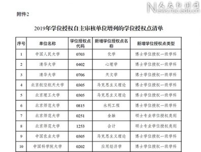 中國人民大學于2018年4月成為全國首批20所學位授權自主審核單位之一。2019年,學校根據學科發展需要首次開展了新增學位點審核工作。此次獲批的化學一級學科博士學位授權點,是我校自主審核增列的第一個學位授權點。