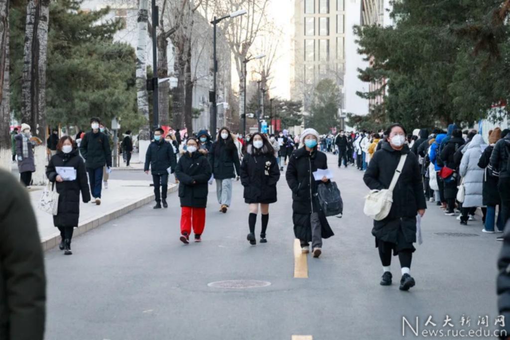 12月24—25日,2023年全國碩士研究生招生考試中國人民大學考點考試如期舉行。今年共有2.7萬余名考生報考中國人民大學碩士研究生。其中,在中國人民大學考點參加考試的考生人數6415人,共安排263個普通考場,111個隔離和備用考場。學校共組織800多名監考老師、200多名學生志愿者、一大批后勤保障和安全保衛人員參與了本次考試的考務組織、疫情防控、后勤安保等工作。