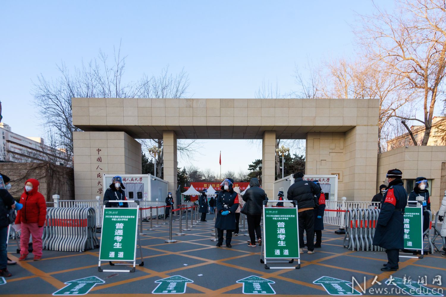 (2023年全國碩士研究生招生考試中國人民大學考點清晨做好考生入場準備)