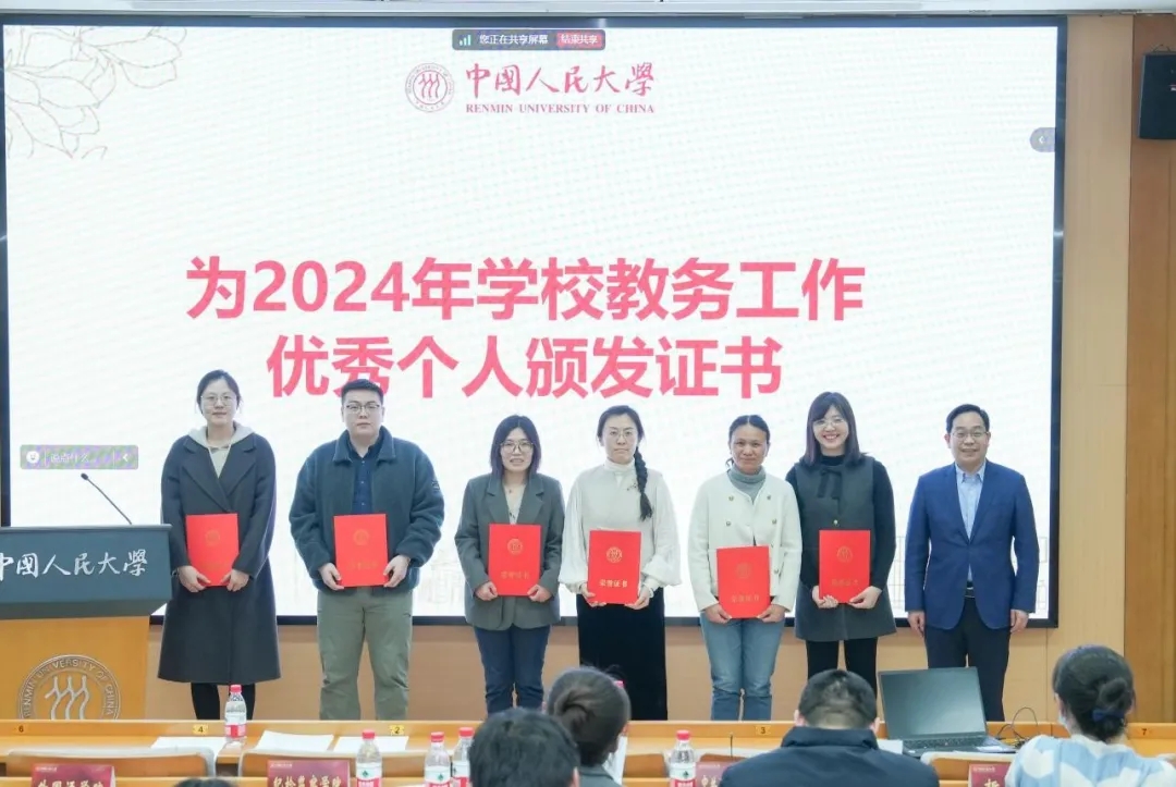 會上,馮仕政副校長為獲得2024年學校“教務工作優秀個人”的研究生教務老師代表頒發證書。
