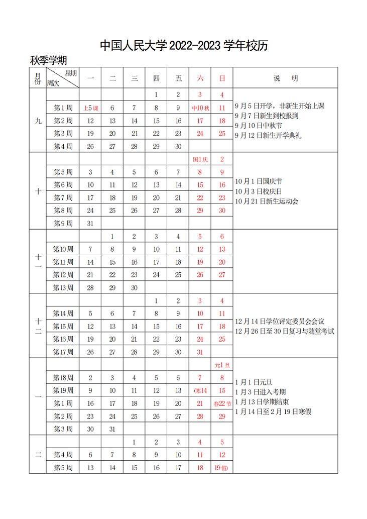 中國人民大學(xué)2022-2023學(xué)年校歷